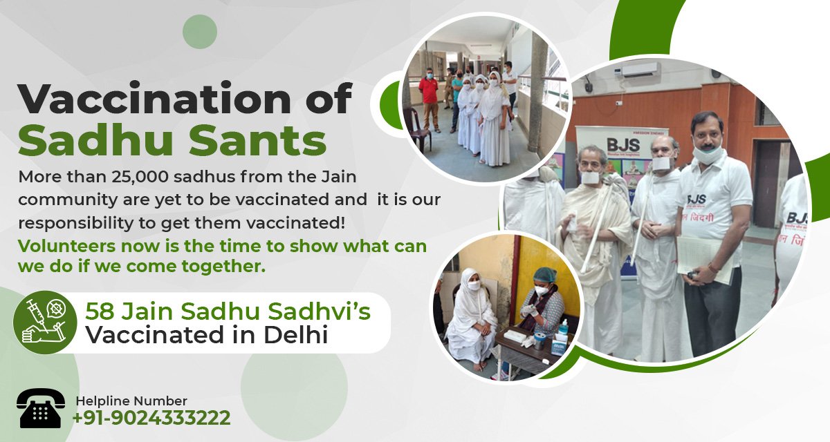 Most of the saints and monks associated with Jain society are traveling throughout their lives. For this reason, there is no permanent identity like the Aadhar card and identity card. A government identity card is required for corona vaccination. So there was a problem with their vaccination. TheBJS Delhi as a key facilitator took the front on this problem and started the initiative.