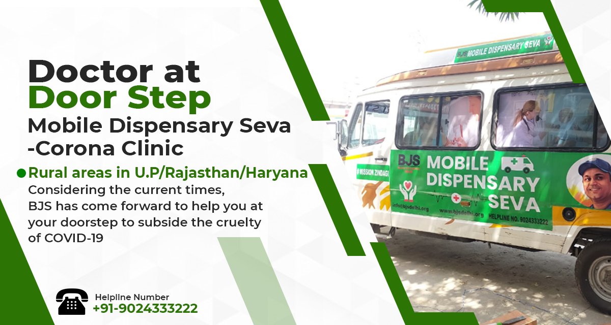 Bhartiya Jain Sanghatan (BJS, Delhi) has initiated a Mobile Dispensary facility at your doorstep in small towns that come under 200-250 KM AREA around Delhi and in these neighboring states - UP, Haryana, and RAJASTHAN.