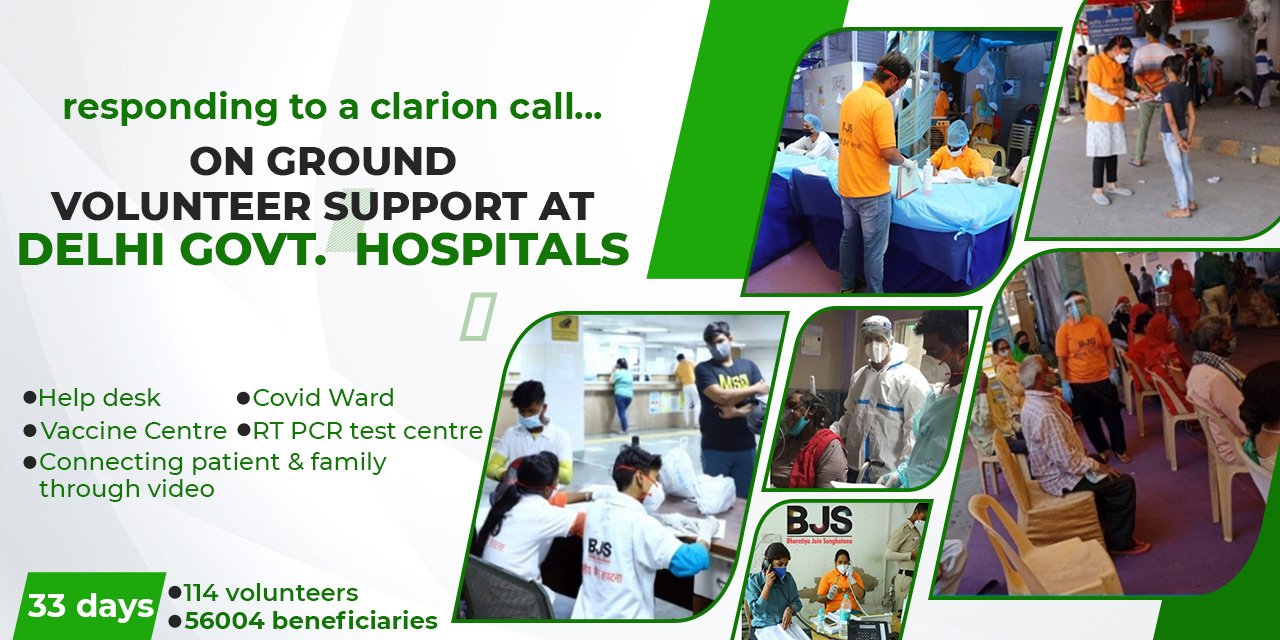 Hospitals are ground zero in the war against COVID-19. Like any other war, this one needs troops aplenty — not only doctors, nurses and others with medical prowess, but also patient and kind souls to guide and coordinate with the teeming masses that flock to them in fear. As a part of the disaster management organization, BJS embarked upon Govt. hospitals by leveraging its team of dedicated volunteers.