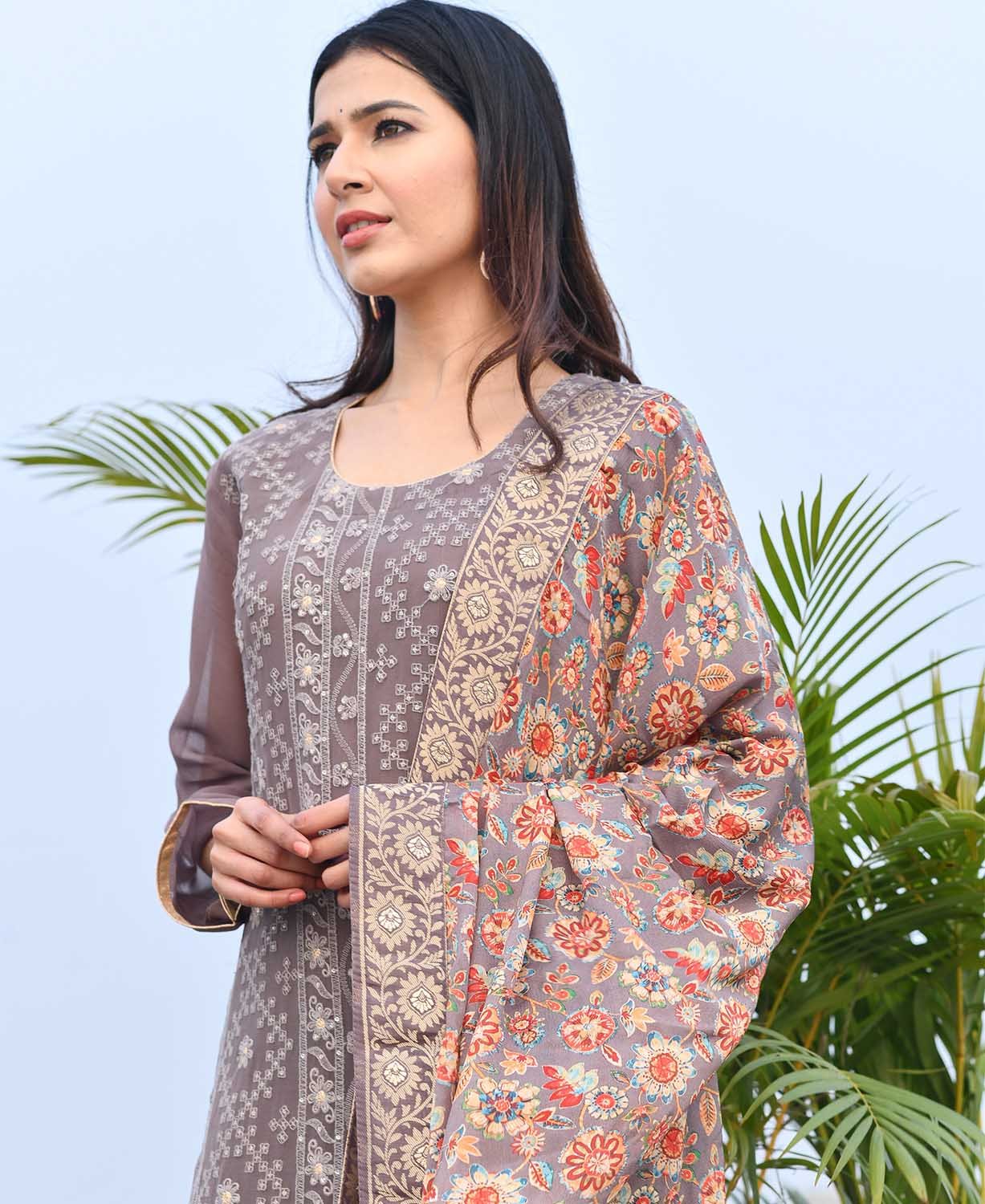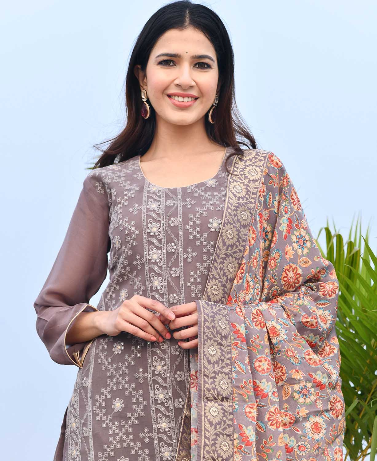 - The unstitched salwar-suit is elevated with Sequence Embroidery Work